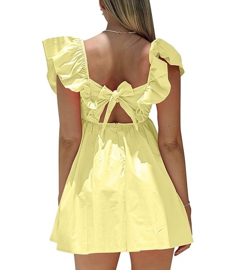 The voluminous ruffle sleeves draw attention to the upper arms and shoulders, giving the dress a fun and feminine look in this summer dress for women .